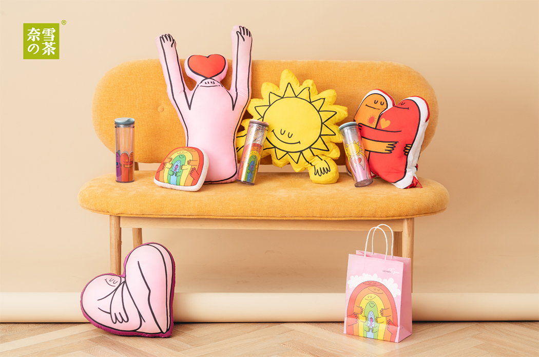2019 年 8 月,以「Being A Cat」为主题,奈雪的茶联合日本艺术家 PePe Shimada,选择了六幅以猫咪为主角的作品,呈现在奈雪的饮品杯上,旨在呼吁都市年轻人体悟「像猫一样的生活」,在快节奏的日常中放慢步伐享受美好。今年春节期间,奈雪的茶则邀请人气插画家 Cinyee Chiu 创作了六只开运瑞兽,希望每一位奈雪的消费者,都可以拥有来自瑞兽的庇佑。